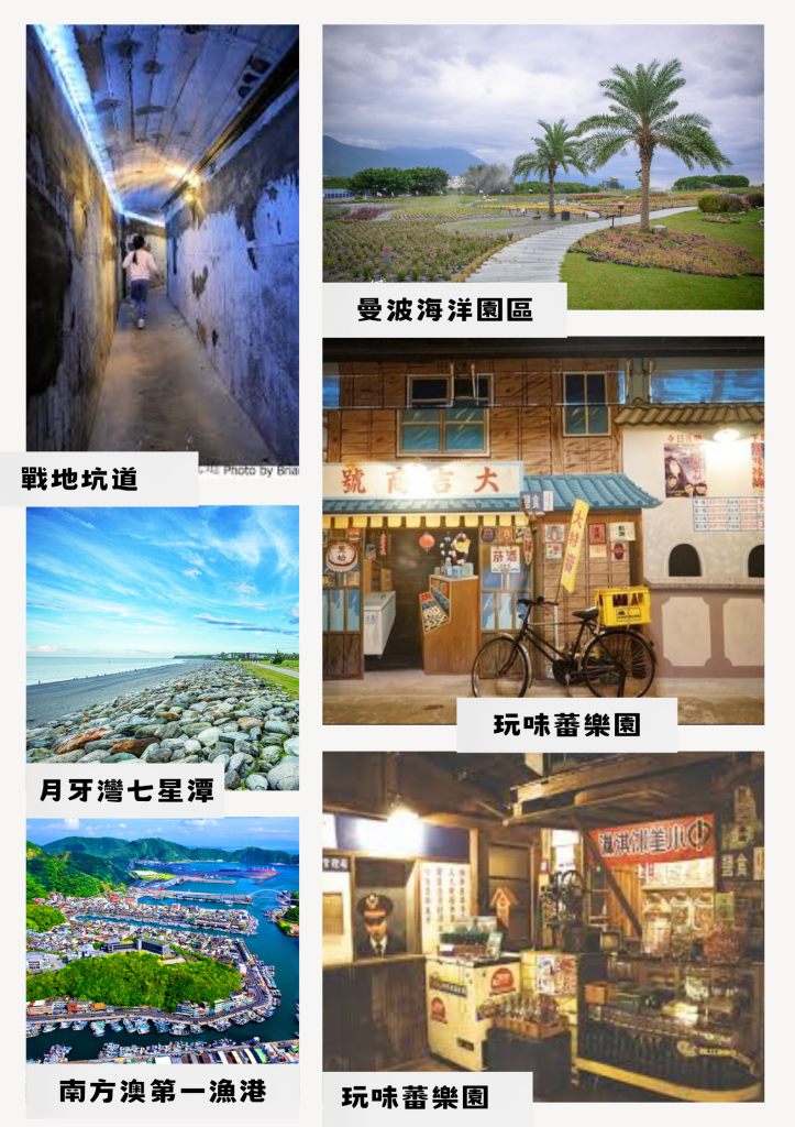 曼波海洋園區賞花海,探索戰地坑道/月牙灣七星潭疊石樂→